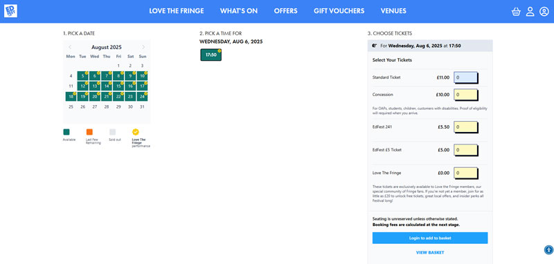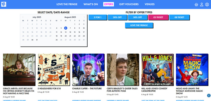 To claim an EdFest offer, simply navigate to the ‘Offers’ tab along the top. This will bring you to all the offer types. You can then explore which shows have opted in to these offers. Filter by date and offer type to streamline your booking experience.